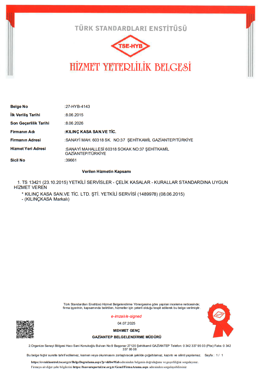 Sertifikalarımız düzenli olarak yenilenmektedir.